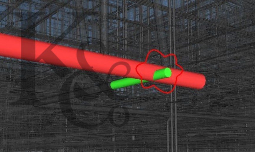 Choques directos entre elementos: tubería vs viga, ducto vs muro, bandeja eléctrica vs tubería.